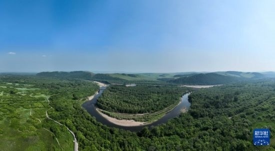 7月2日拍攝的額爾古納市額爾古納國(guó)家濕地公園(無人機(jī)全景照片)。