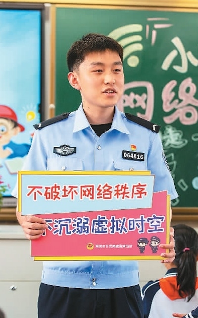 江蘇省海安市公安局城南派出所民警在給該市教師發(fā)展中心附屬小學(xué)學(xué)生上網(wǎng)絡(luò)安全知識(shí)課。翟慧勇攝(人民視覺(jué))