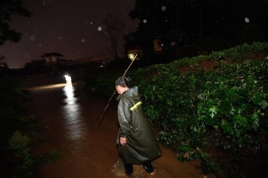 18日晚上,夜色深沉,一陣雷鳴轟然響起,雨還是下了起來。抓起椅背上的雨衣,抖了抖上面的雨水,呂懷義又開始巡堤工作,銀色的雨幕中,河堤上成排的防汛隊伍清晰可見……(參與采寫:鄭家寶)