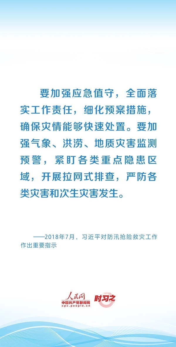 中共中央政治局常務(wù)委員會(huì)7月25日召開會(huì)議,研究部署防汛抗洪救災(zāi)工作。中共中央總書記習(xí)近平主持會(huì)議并發(fā)表重要講話。一直以來,習(xí)近平總書記高度重視防汛抗洪救災(zāi)各項(xiàng)工作,多次作出重要指示批示,強(qiáng)調(diào)切實(shí)保障人民群眾生命財(cái)產(chǎn)安全。