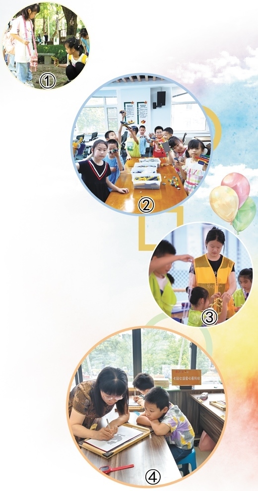 圖①:廣東省佛山市高明區(qū)組織孩子們到森林公園游覽,將研學(xué)實踐融入暑期托管。賀林平 劉鳳平攝影報道圖②:吉林省長春市義和社區(qū)暑期托管班里,孩子們在展示手工作品。常 玥攝 圖③:湖北省武漢市一個寫字樓里的暑期托管班,志愿者在照看孩子。共青團武漢市武昌區(qū)委供圖 圖④:江蘇省宜興市振興社區(qū)暑期托管班里,老師給孩子們示范手工刻紙。趙 霞攝