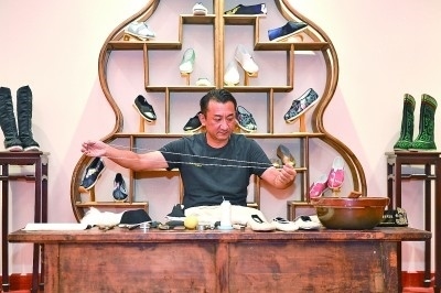 十多年前,26歲的蔡文科拜師學藝。幾年后,同期學藝的人陸續(xù)走了,他卻堅持了下來。吃了些苦頭、費了些心思,蔡文科出師了,還成為內聯(lián)升布鞋非遺傳承人。