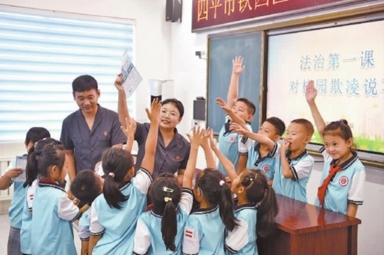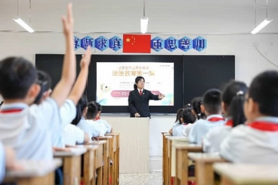 近日,吉林省四平市鐵西區(qū)人民法院依托法治副校長工作機(jī)制,攜手四平市陽光實(shí)驗(yàn)小學(xué)舉辦了一場生動的“開學(xué)第一課”,通過與同學(xué)們互動問答、角色扮演等形式,為青少年健康成長營造良好法治環(huán)境,不斷提升青少年群體的法治素養(yǎng)。圖為法官與同學(xué)們在課堂上進(jìn)行互動交流。(記者 孫兵 通訊員 任青陽)
