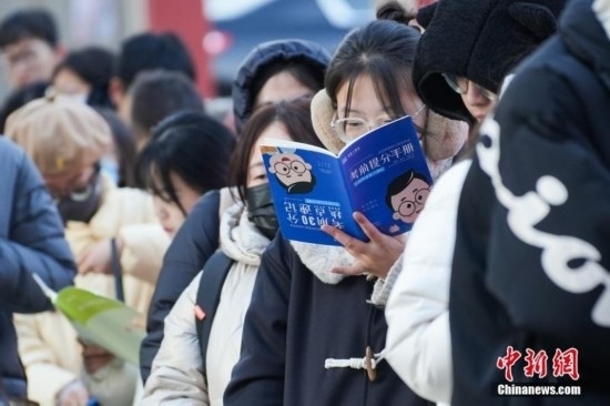 2023年11月26日,山西省太原市,考生在考場外復(fù)習(xí)。當(dāng)日,中央機關(guān)及其直屬機構(gòu)2024年度考試錄用公務(wù)員公共科目筆試舉行。中新社記者 武俊杰 攝