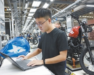“哪個(gè)環(huán)節(jié)的裝配參數(shù)和給定值不吻合,系統(tǒng)就會(huì)自動(dòng)報(bào)警,不再需要人工巡檢,效率得到大幅提升?!标悋刚f,得益于數(shù)智化生產(chǎn)線,每150秒就有一輛摩托車下線。