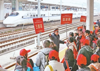 “廣州南站開(kāi)辟了綠色通道,安排工作人員和志愿者在站臺(tái)、出站口、停車場(chǎng)等地提供咨詢指引、行李搬運(yùn)等服務(wù),讓返崗更順暢?!睆V州南站值班站長(zhǎng)謝海介紹。