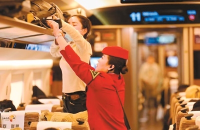 近日,G894次列車長(zhǎng)張慧在客流高峰期加密車廂巡查頻次,動(dòng)態(tài)做好行李架整理。