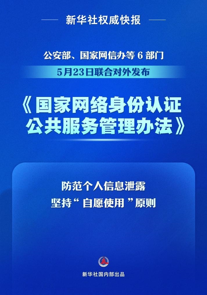 破解公民身份信息網(wǎng)絡(luò)泄露難題,加強(qiáng)個(gè)人信息保護(hù)。公安部、國(guó)家網(wǎng)信辦等6部門(mén)5月23日聯(lián)合對(duì)外發(fā)布《國(guó)家網(wǎng)絡(luò)身份認(rèn)證公共服務(wù)管理辦法》,推進(jìn)國(guó)家網(wǎng)絡(luò)身份認(rèn)證公共服務(wù)建設(shè),進(jìn)一步推廣應(yīng)用公共服務(wù)。