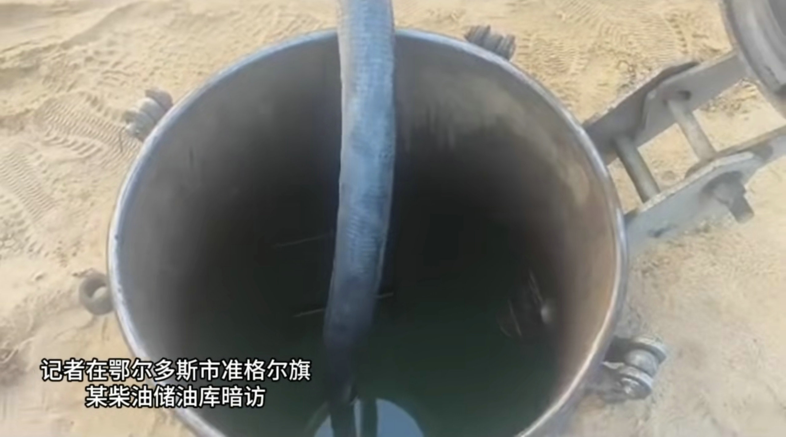 10月28日,內(nèi)蒙古日報(bào)社張弓長新聞工作室記者在鄂爾多斯市準(zhǔn)格爾旗一個(gè)緊鄰礦區(qū)的山溝里暗訪時(shí)發(fā)現(xiàn),有一處規(guī)模較大的地埋罐式柴油儲油庫,存在重大安全隱患。