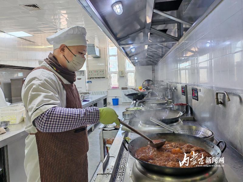 春節(jié)期間的桑根達(dá)來(lái)行車(chē)公寓后廚,廚師孫磊正在灶臺(tái)前忙碌著。面前一口碩大的鐵鍋內(nèi),醬色的四喜丸子在濃郁的湯汁里,散發(fā)著撲鼻的香氣。廚房升騰著陣陣煙火氣,蒸汽在玻璃窗上凝成水珠。灶臺(tái)上好幾口鐵鍋同時(shí)翻騰著——紅燒肉咕嘟冒泡,油燜大蝦亮紅誘人,燉牛肉飄來(lái)陣陣香氣,圓嘟嘟的餃子也即將下鍋。千家萬(wàn)戶(hù)團(tuán)圓之時(shí),這個(gè)草原深處的特殊驛站里,工作人員正用精心制作的特色美食,為堅(jiān)守崗位的鐵路人打造出別具溫情的團(tuán)圓飯。