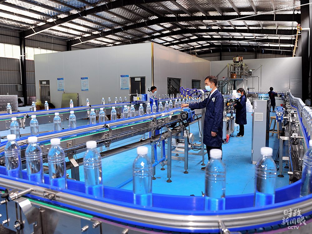 △湖南邵陽市桐山鄉(xiāng)椒林村充分利用當地山泉水資源,加工生產瓶裝水。