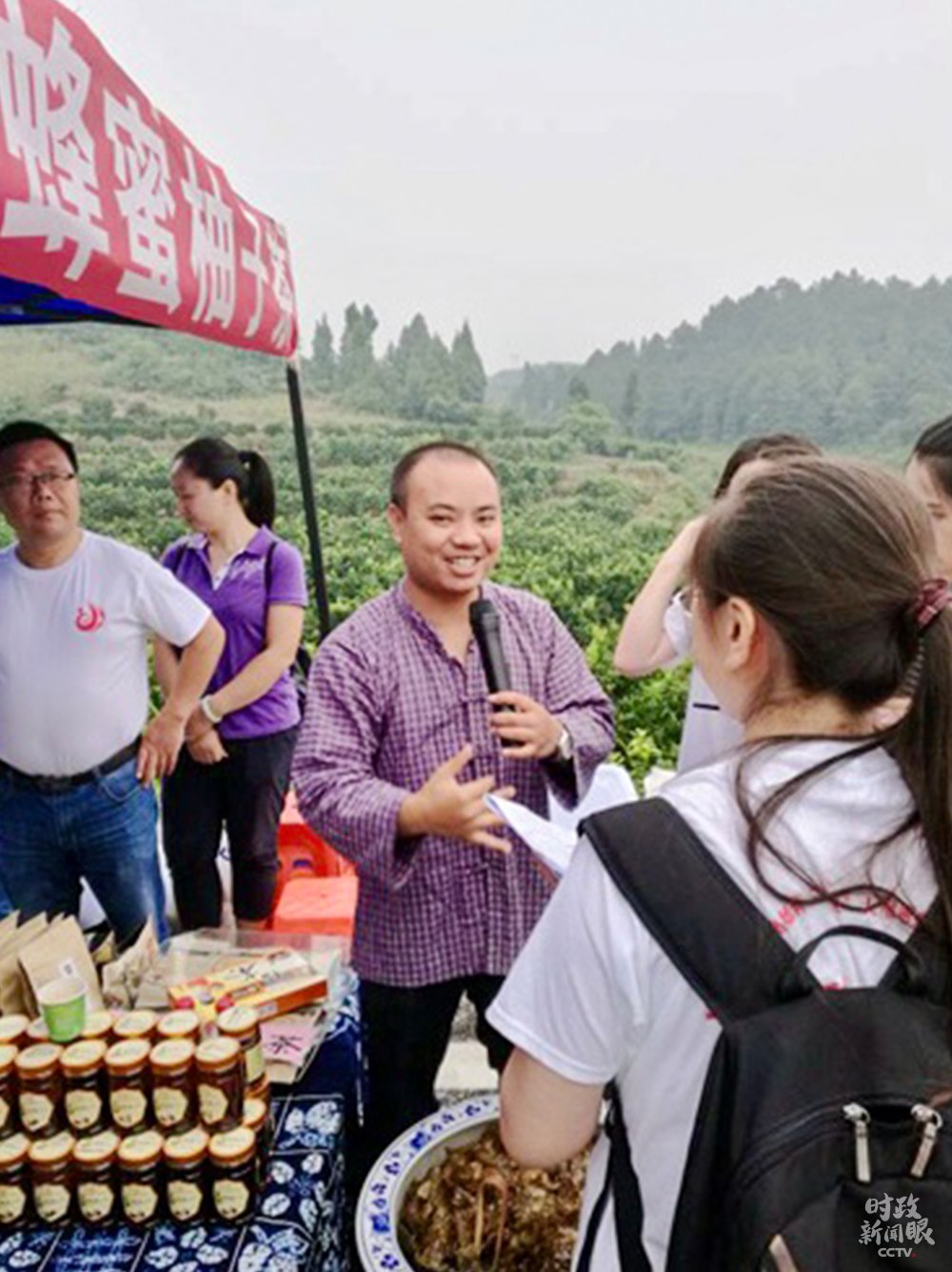 △周祖輝今年4月被評為“2020年全國向上向善好青年”。這是他向游客推介家鄉(xiāng)特產。