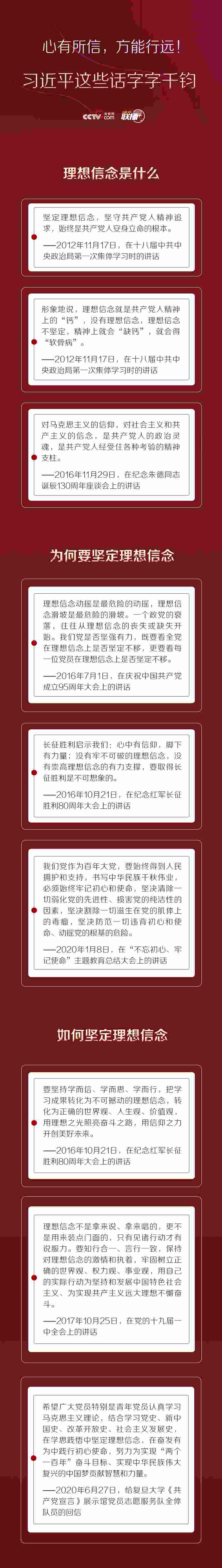 從回答“理想信念是什么”,到闡述“為何要堅定理想信念”,再到解答“如何堅定理想信念”……黨的十八大以來,習近平總書記多次在不同場合對理想信念進行深入闡釋,言簡意深,《聯(lián)播+》與您一同學習、領(lǐng)會。