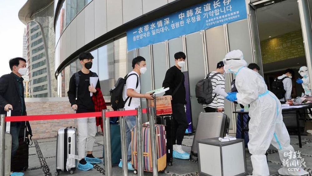 △中韓兩國(guó)啟動(dòng)人員往來“快捷通道”。這是來自韓國(guó)的企業(yè)員工抵達(dá)天津。
