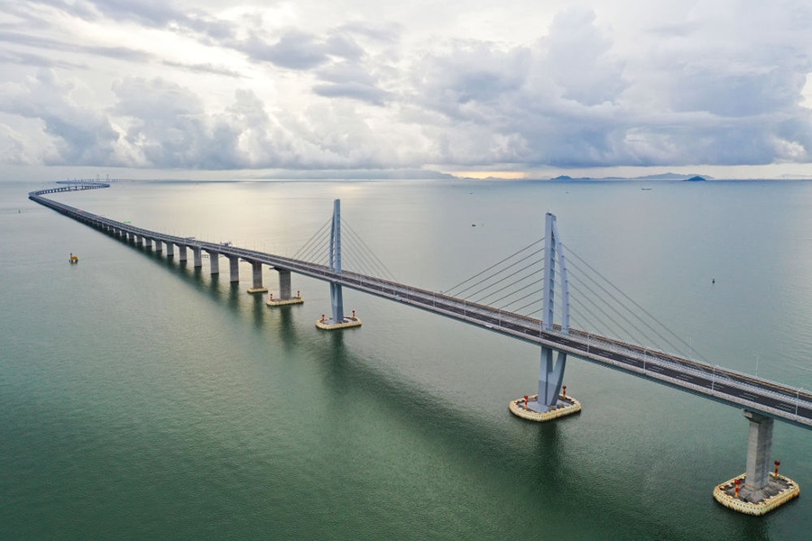2020年9月12日拍攝的港珠澳大橋(無人機照片)。新華社記者陳曄華攝