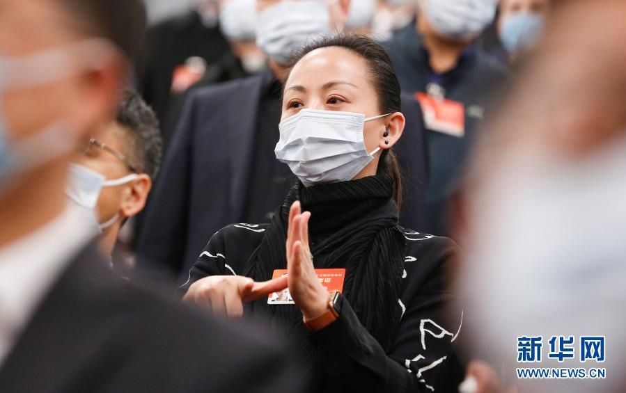 3月5日,第十三屆全國人民代表大會第四次會議在北京人民大會堂開幕。這是列席大會的全國政協(xié)委員、中國殘疾人藝術團團長邰麗華用手語“唱”國歌。新華社記者 張玉薇 攝