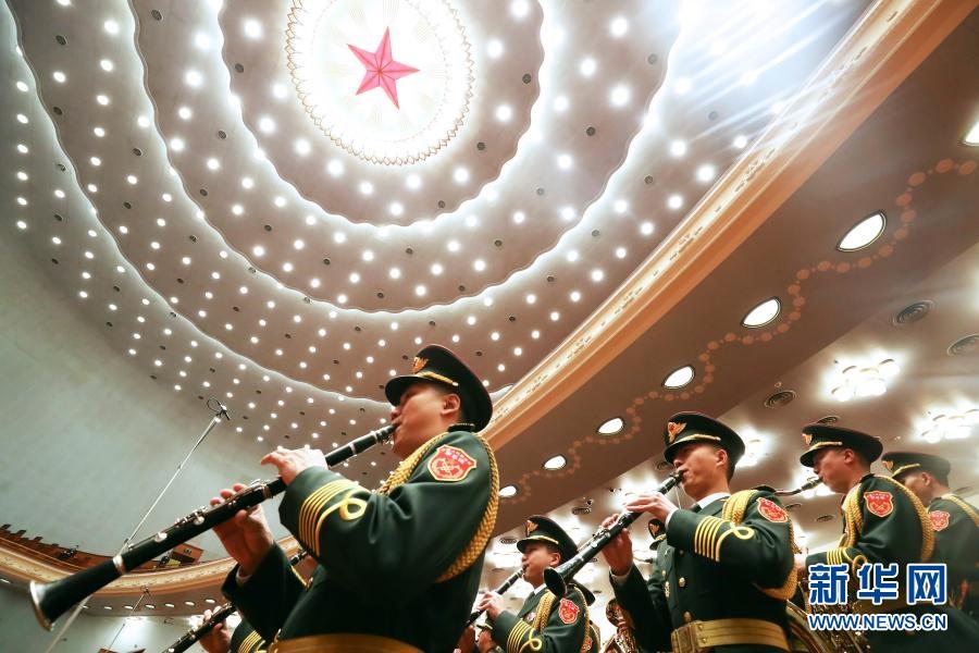 3月5日,第十三屆全國人民代表大會第四次會議在北京人民大會堂開幕。這是軍樂團在演奏。新華社記者 金良快 攝