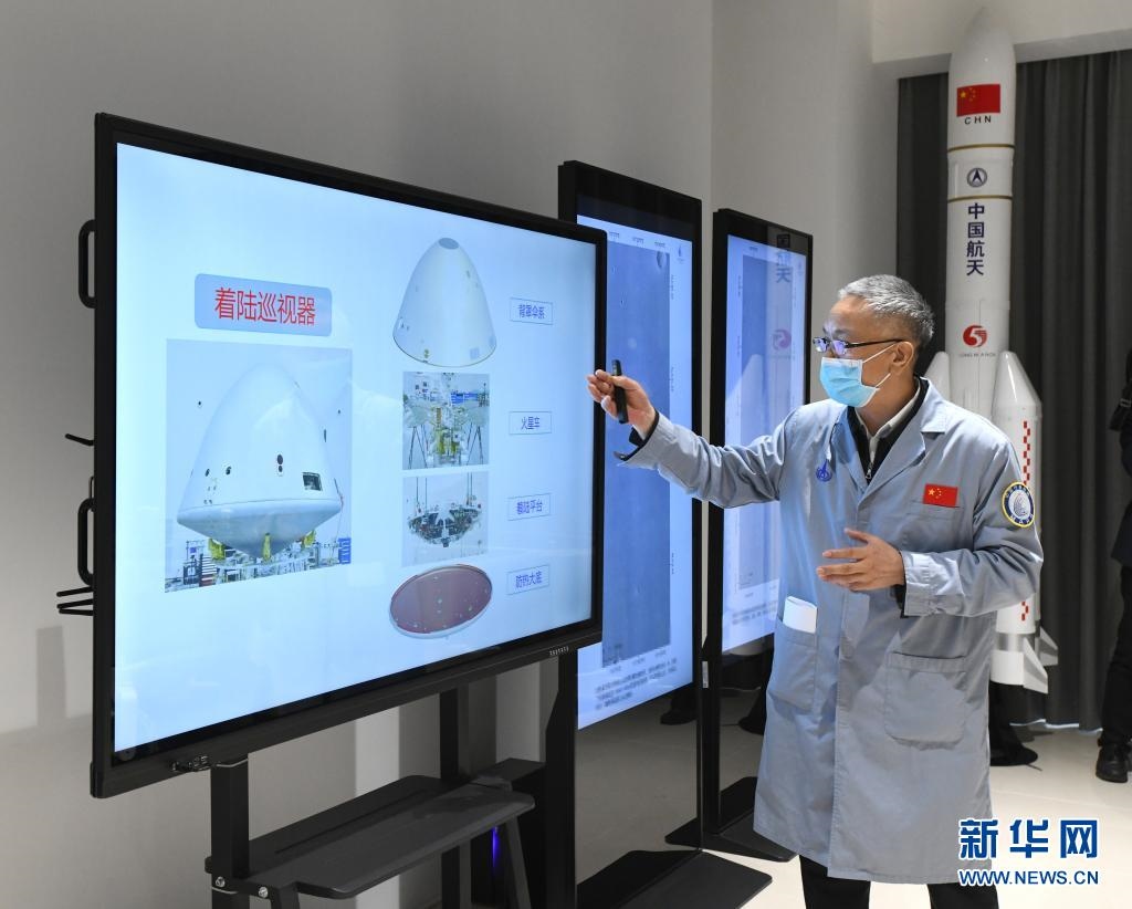 2021年5月15日,中國(guó)首次火星探測(cè)任務(wù)工程總設(shè)計(jì)師張榮橋介紹著陸巡視器有關(guān)情況。新華社記者 饒愛(ài)民 攝