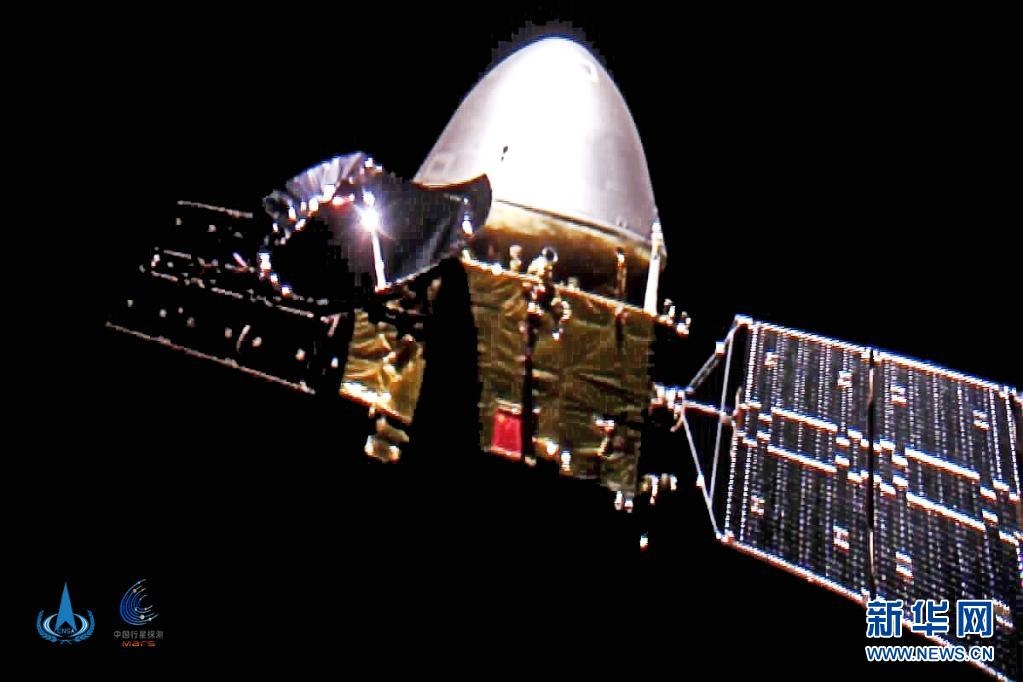 2020年10月1日,國(guó)家航天局發(fā)布我國(guó)首次火星探測(cè)任務(wù)天問(wèn)一號(hào)探測(cè)器飛行圖像。新華社發(fā)(國(guó)家航天局供圖)