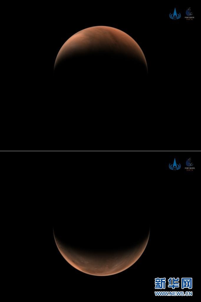 2021年3月26日,國(guó)家航天局發(fā)布2幅由我國(guó)首次火星探測(cè)任務(wù)天問(wèn)一號(hào)探測(cè)器拍攝的南、北半球火星側(cè)身影像。這是一張拼版照片,上圖為:北半球上方火星影像;下圖為:南半球上方火星影像?! ?/p>