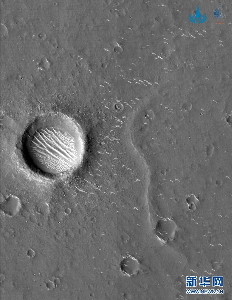 2021年3月4日,國(guó)家航天局發(fā)布3幅由我國(guó)首次火星探測(cè)任務(wù)天問(wèn)一號(hào)探測(cè)器拍攝的高清火星影像圖,包括2幅全色圖像和1幅彩色圖像。這是國(guó)家航天局公布的高清火星影像圖。新華社發(fā)(國(guó)家航天局供圖)