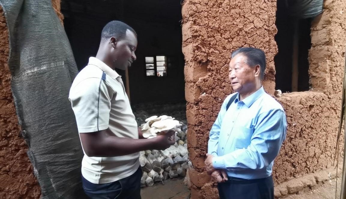 2019年,林占熺在盧旺達指導(dǎo)當?shù)剞r(nóng)戶菌草種菇。圖片來源:國家菌草工程技術(shù)研究中心