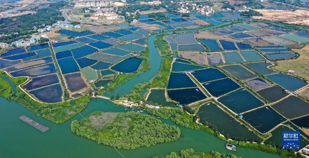 這是廣西欽州市欽南區(qū)沙埠鎮(zhèn)船埠環(huán)村的冬日蝦塘景色(11月25日攝,無人機(jī)照片)。新華社記者張愛林?jǐn)z