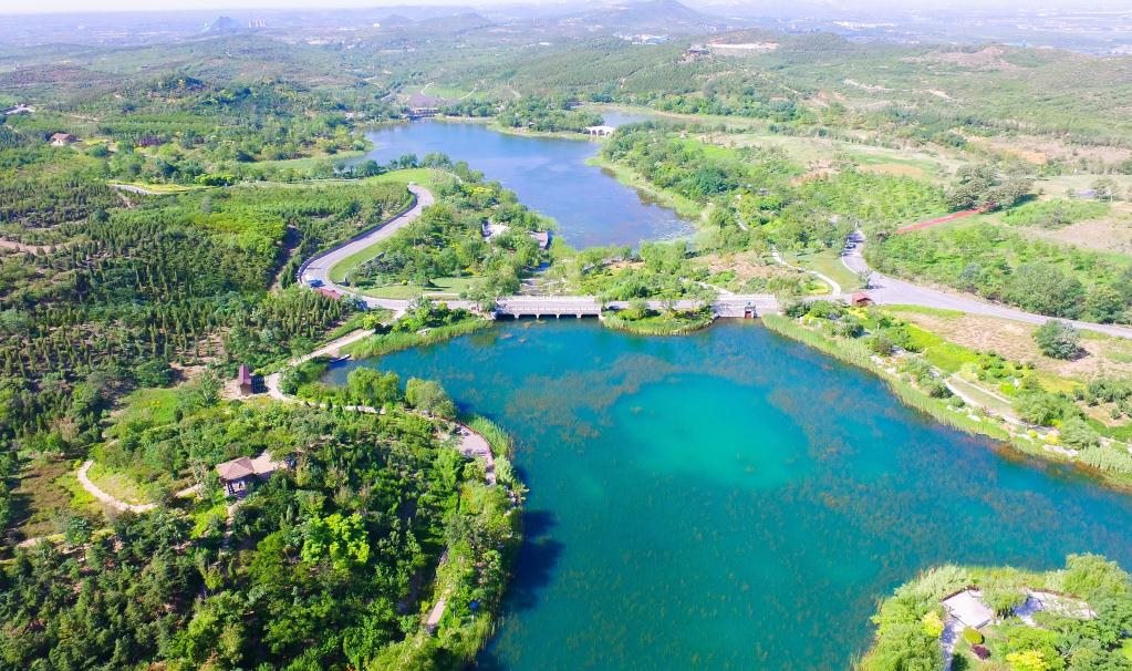 這是河北省邯鄲市叢臺(tái)區(qū)廢棄礦山修復(fù)打造的紫山生態(tài)涵養(yǎng)區(qū)(2020年6月14日,無(wú)人機(jī)照片)。新華社記者朱旭東攝