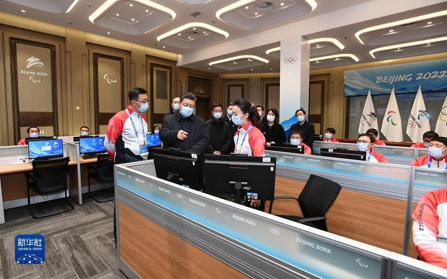 1月4日,中共中央總書記、國(guó)家主席、中央軍委主席習(xí)近平在北京考察2022年冬奧會(huì)、冬殘奧會(huì)籌辦備賽工作。這是4日下午,習(xí)近平在北京冬奧運(yùn)行指揮部調(diào)度中心考察。新華社記者 謝環(huán)馳 攝