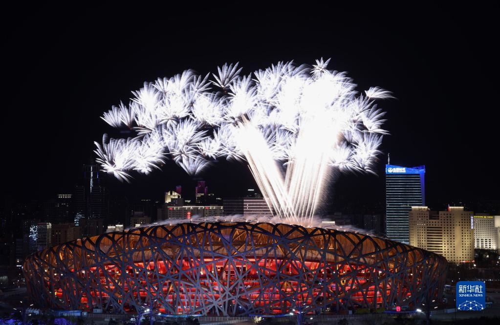 北京2022年冬奧會(huì)開(kāi)幕式上的焰火表演(2月4日攝)。新華社記者 盧燁 攝