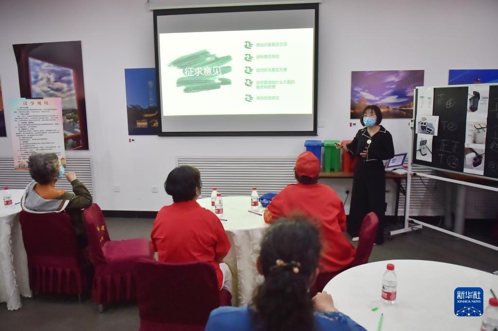 在北京建國(guó)門街道趙家樓社區(qū)議事廳舉行的“兩桶一袋”居民征求意見(jiàn)懇談會(huì)上,來(lái)自社區(qū)的12位垃圾分類達(dá)人對(duì)“兩桶”款式進(jìn)行投票選擇,同時(shí),街道針對(duì)桶站位置、定時(shí)定點(diǎn)投放等垃圾分類運(yùn)營(yíng)管理聽(tīng)取居民意見(jiàn)(2020年5月2日攝)。新華社記者彭子洋攝