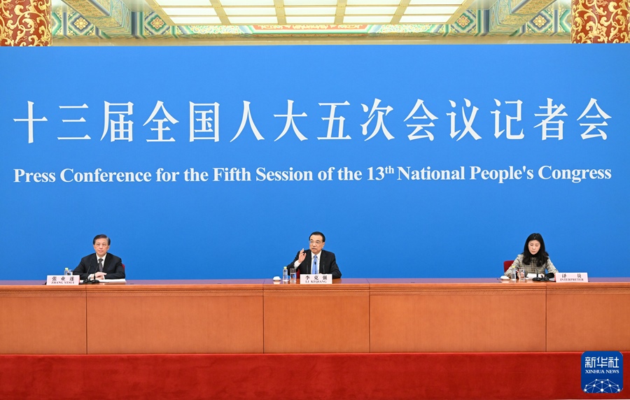 3月11日上午,十三屆全國人大五次會議在北京人民大會堂舉行記者會,國務(wù)院總理李克強(qiáng)應(yīng)大會發(fā)言人張業(yè)遂的邀請出席記者會,并回答中外記者提問。新華社記者 李鑫 攝