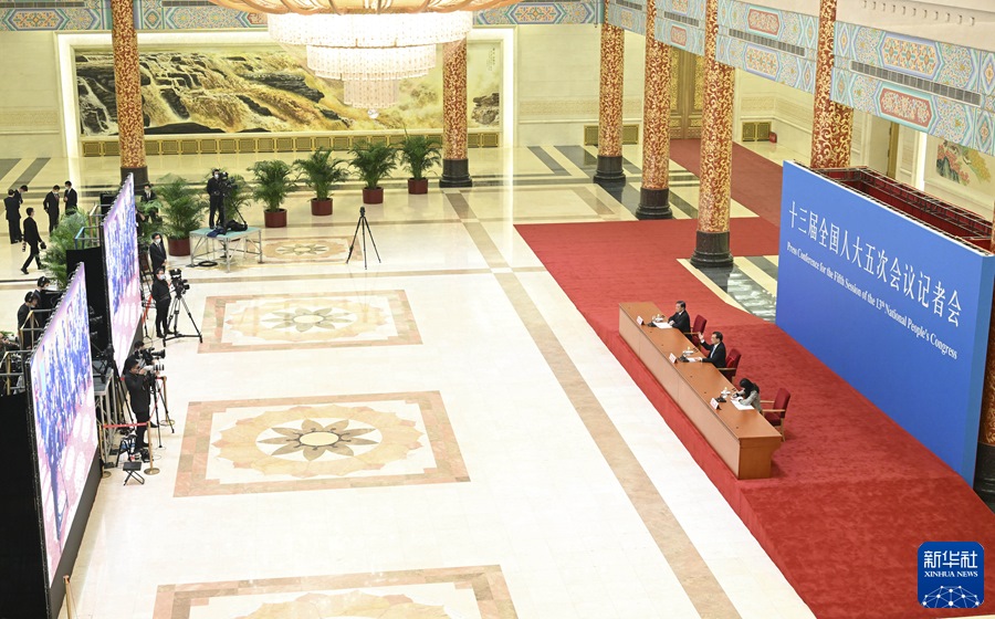 記者會采用網(wǎng)絡(luò)視頻形式進(jìn)行,主會場設(shè)在人民大會堂三樓金色大廳,分會場設(shè)在梅地亞兩會新聞中心。記者會歷時(shí)約130分鐘。