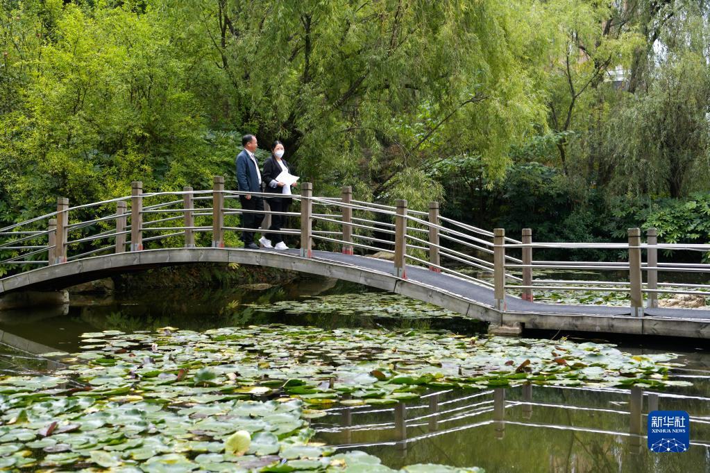 10月16日,在貴州貴陽(yáng)觀山湖區(qū)金陽(yáng)街道,金元社區(qū)黨總支副書記安春燕(右)與居民交流。新華社記者 楊文斌 攝