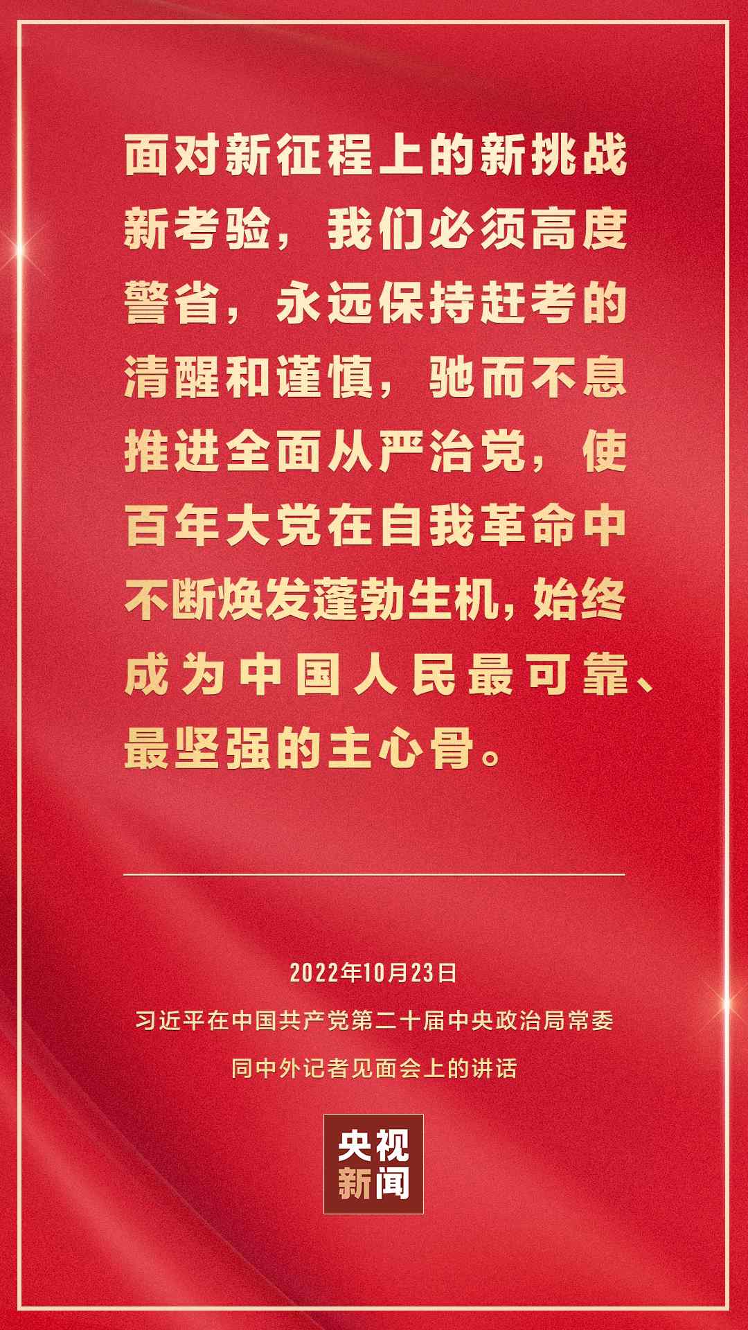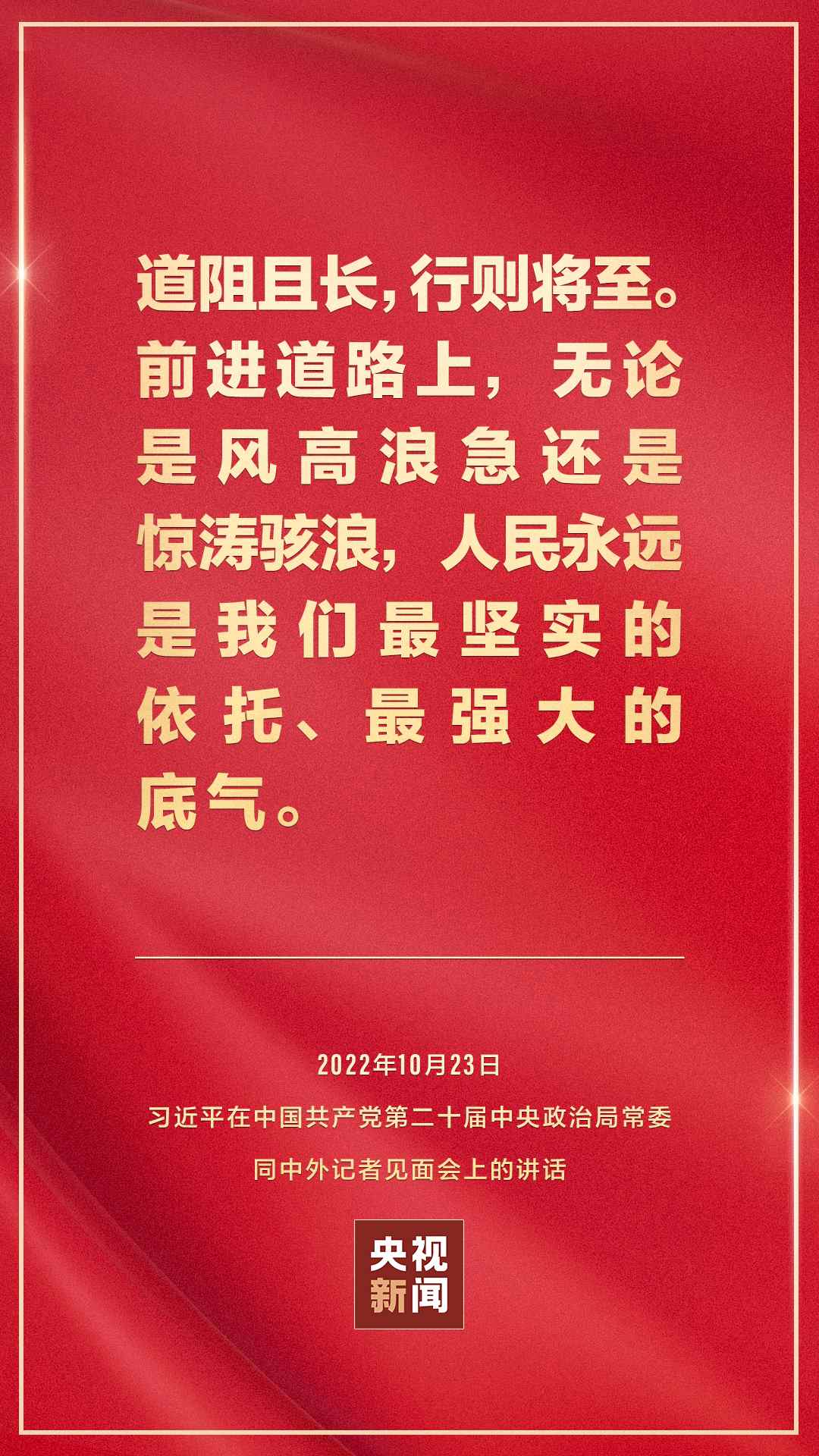 在中國(guó)共產(chǎn)黨第二十屆中央委員會(huì)第一次全體會(huì)議上當(dāng)選的中共中央總書(shū)記習(xí)近平和中共中央政治局常委李強(qiáng)、趙樂(lè)際、王滬寧、蔡奇、丁薛祥、李希,23日中午在人民大會(huì)堂同采訪中共二十大的中外記者見(jiàn)面。習(xí)近平發(fā)表重要講話。