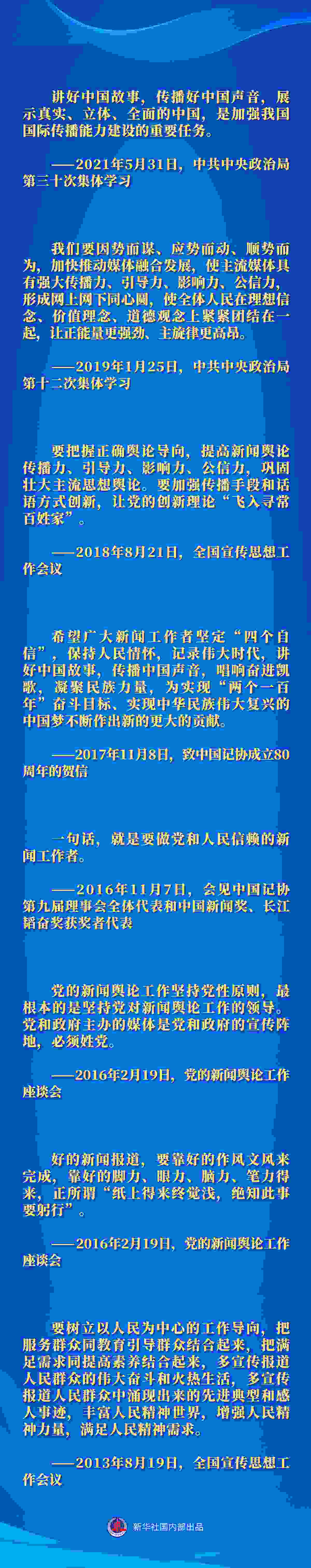 11月8日將迎來第23個記者節(jié)。新時代新征程上,廣大新聞工作者使命光榮、重任在肩。讓我們一道重溫習(xí)近平總書記的諄諄囑托,不斷提高新聞輿論傳播力、引導(dǎo)力、影響力、公信力,始終做黨的政策主張的傳播者、時代風(fēng)云的記錄者、社會進(jìn)步的推動者、公平正義的守望者——