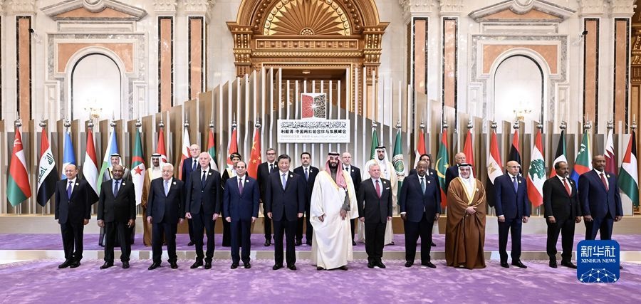 當?shù)貢r間12月9日下午,首屆中國-阿拉伯國家峰會在沙特首都利雅得阿卜杜勒阿齊茲國王國際會議中心舉行。國家主席習(xí)近平和沙特王儲兼首相穆罕默德、埃及總統(tǒng)塞西、約旦國王阿卜杜拉二世、巴林國王哈馬德、科威特王儲米沙勒、突尼斯總統(tǒng)賽義德、吉布提總統(tǒng)蓋萊、巴勒斯坦總統(tǒng)阿巴斯、卡塔爾埃米爾塔米姆、科摩羅總統(tǒng)阿扎利、毛里塔尼亞總統(tǒng)加茲瓦尼、伊拉克總理蘇達尼、摩洛哥首相阿赫努什、阿爾及利亞總理阿卜杜拉赫曼、黎巴嫩總理米卡提等21個阿盟國家領(lǐng)導(dǎo)人以及阿拉伯國家聯(lián)盟秘書長蓋特等國際組織負責人出席峰會。習(xí)近平在會上發(fā)表題為《弘揚中阿友好精神 攜手構(gòu)建面向新時代的中阿命運共同體》的主旨講話。新華社記者 謝環(huán)馳 攝