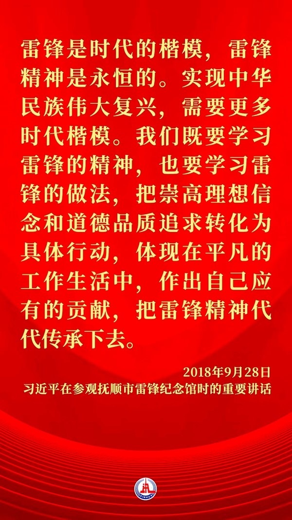“雷鋒是時代的楷模,雷鋒精神是永恒的。實現(xiàn)中華民族偉大復興,需要更多時代楷模?!绷暯娇倳浀奶栒?,喚起億萬人奮斗與堅守。新時代,雷鋒精神是持續(xù)激發(fā)崇德向善的磅礴偉力;新時代“雷鋒”,在新征程上頑強拼搏,匯聚起共和國奔騰向前的時代潮流!