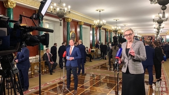 習主席當天在克里姆林宮的活動從下午持續(xù)到晚上。兩國元首先后舉行小范圍、大范圍會談。會談后,兩國元首共同簽署了兩份重磅聯(lián)合聲明,并共同會見記者。當晚,普京總統(tǒng)還為習主席舉行了隆重的歡迎宴會。