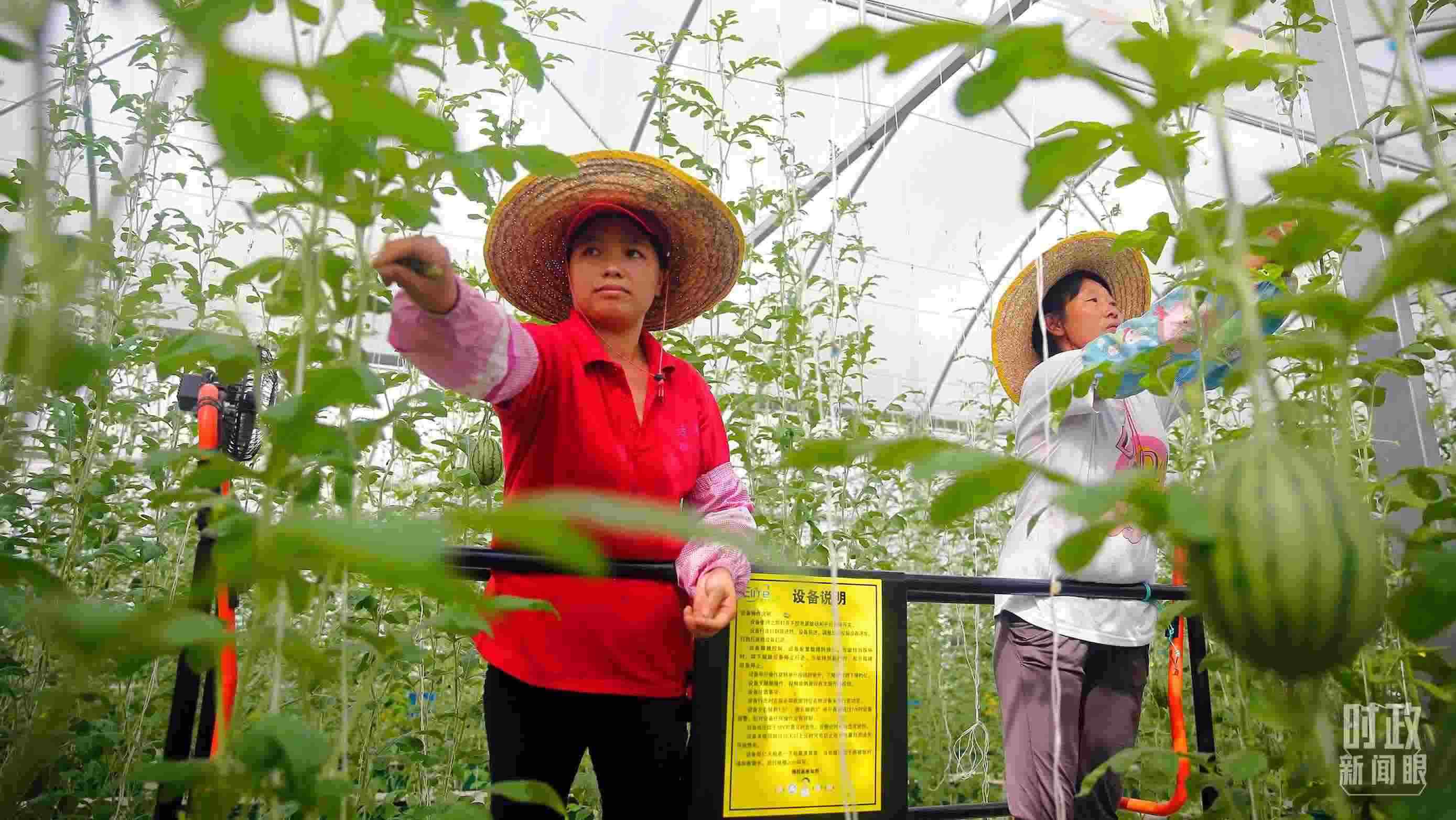 △廣東清遠(yuǎn)連樟村村民正在現(xiàn)代農(nóng)業(yè)科技示范園溫室大棚內(nèi)勞作。(圖/視覺中國(guó))
