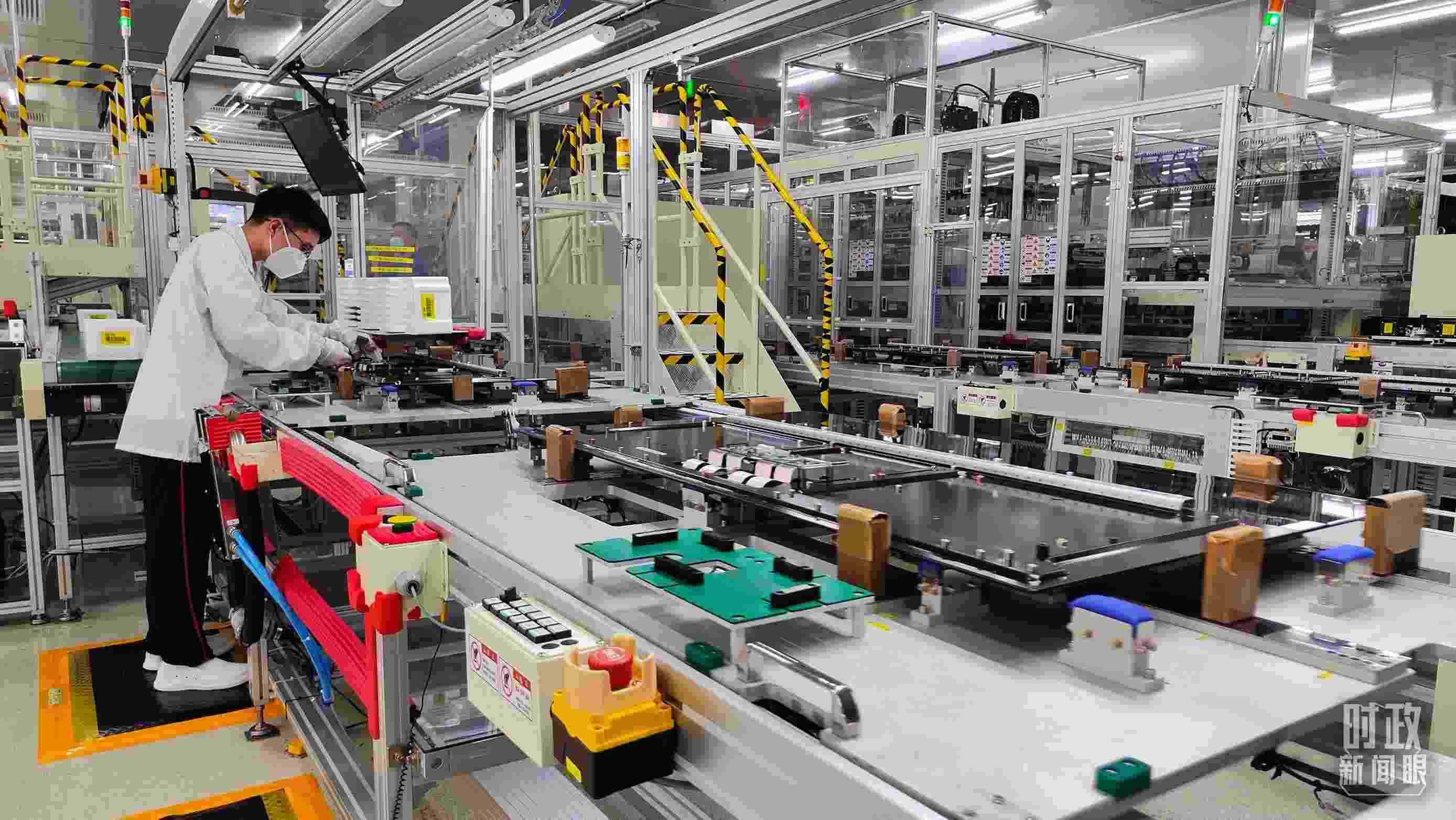 △廣汽埃安總裝車間智能生產(chǎn)線展示。(總臺(tái)央視記者趙化拍攝)