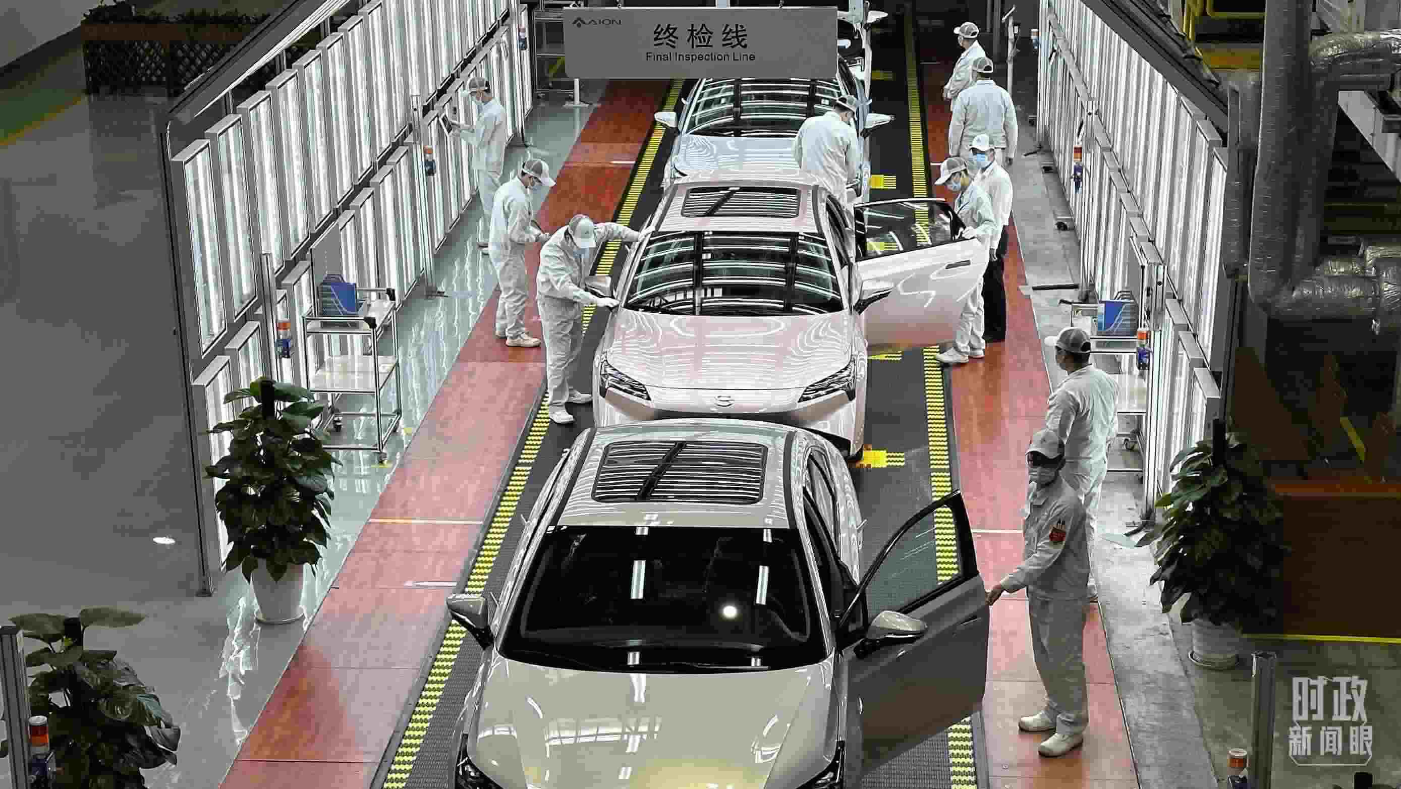 △廣汽埃安總裝車間終檢線作業(yè)現(xiàn)場。(總臺(tái)央視記者趙化拍攝)