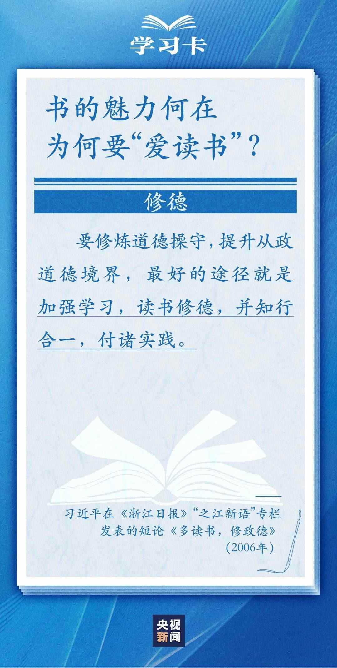 今天(4月23日)是世界讀書日。習(xí)近平曾多次講述和書籍的不解之緣,分享讀書學(xué)習(xí)的感悟,倡導(dǎo)“愛讀書、讀好書、善讀書”。書的魅力何在,為何要“愛讀書”?如何能“選好書”?怎樣“善讀書”?一起學(xué)習(xí)↓