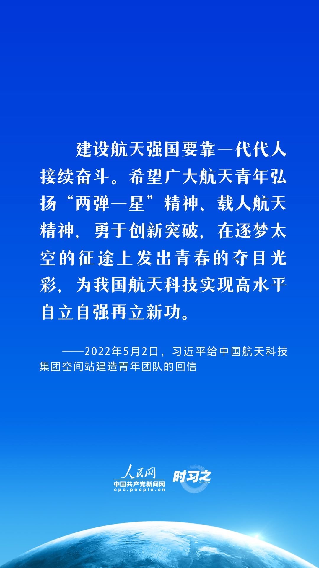 航天夢(mèng)是強(qiáng)國(guó)夢(mèng)的重要組成部分。黨的十八大以來(lái),習(xí)近平總書(shū)記高度重視我國(guó)航天事業(yè)發(fā)展,在不同場(chǎng)合,頻頻提及航天精神,并不斷注入新的時(shí)代內(nèi)涵,激勵(lì)中國(guó)航天以勃發(fā)之氣,巡天探宇叩問(wèn)蒼穹,向著建設(shè)航天強(qiáng)國(guó)的目標(biāo)勇毅前行。