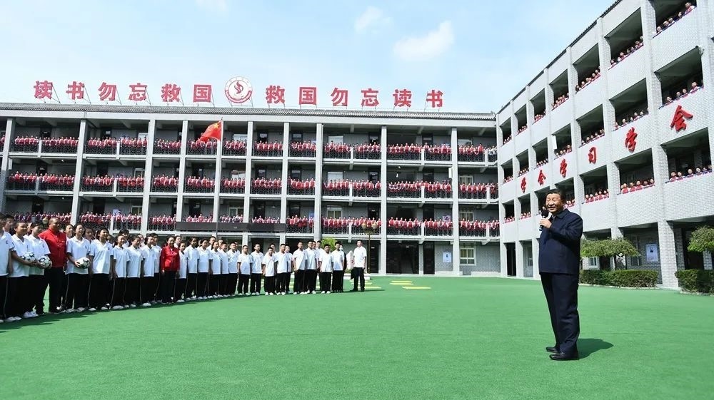 2021年9月14日,在陜西榆林市綏德實(shí)驗(yàn)中學(xué)考察時(shí),習(xí)近平總書記走進(jìn)教室、操場,觀看同學(xué)們書法練習(xí)和體育鍛煉,同大家親切交流。他勉勵(lì)同學(xué)們:“真正做全面發(fā)展的人才,一步一步地走下去,最終都能成為對(duì)社會(huì)有用的人、國之棟梁?!薄暗轮求w美勞全面發(fā)展,字字千金,都是經(jīng)過多年總結(jié)摸索才得出來的。”