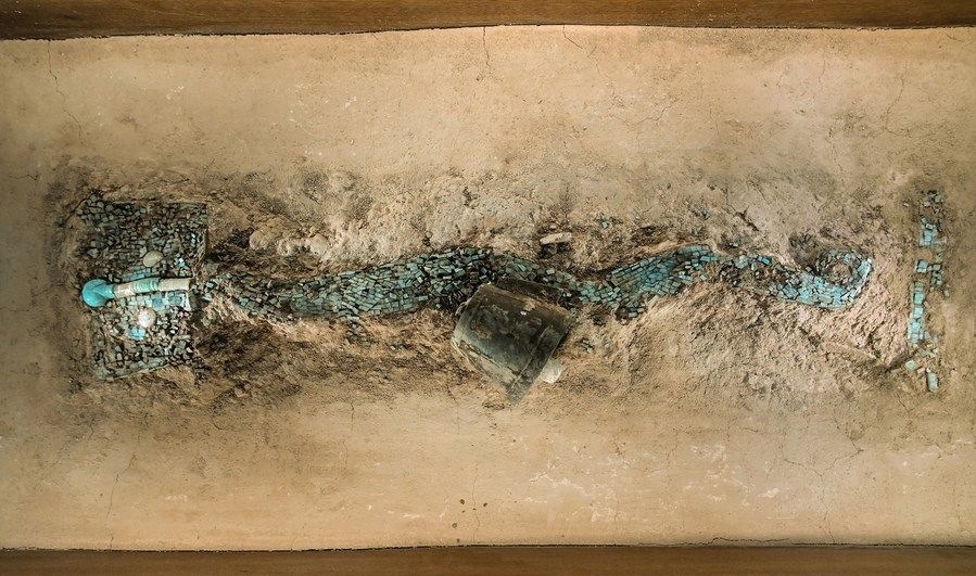 這是中國考古博物館展出的綠松石龍形器。
