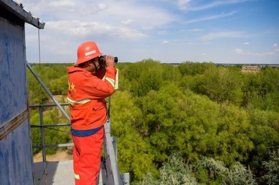 6月5日,臨河區(qū)國營新華林場護林員在開展巡護工作。新華社記者 李志鵬 攝