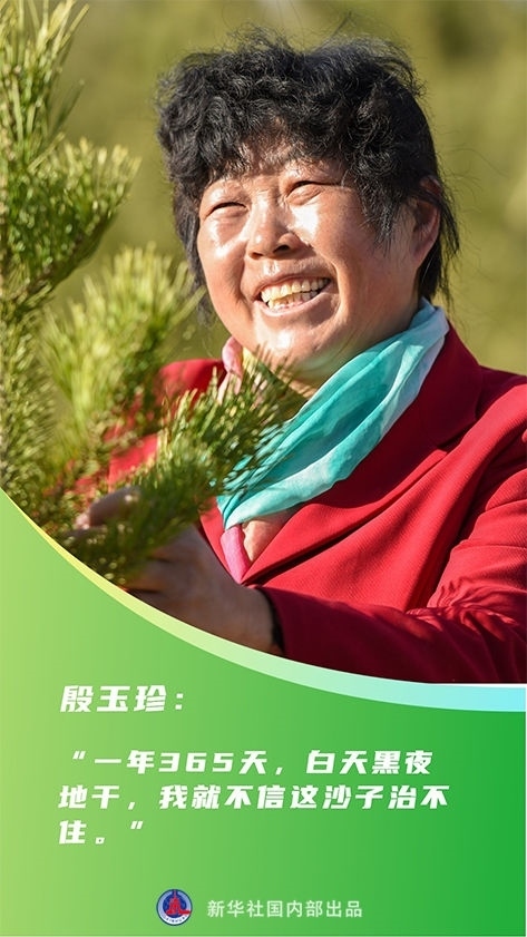 面對惡劣的環(huán)境,殷玉珍沒有退縮,生性倔強(qiáng)的她發(fā)誓:“我寧可種樹累死,也不能讓風(fēng)沙欺負(fù)死!”
