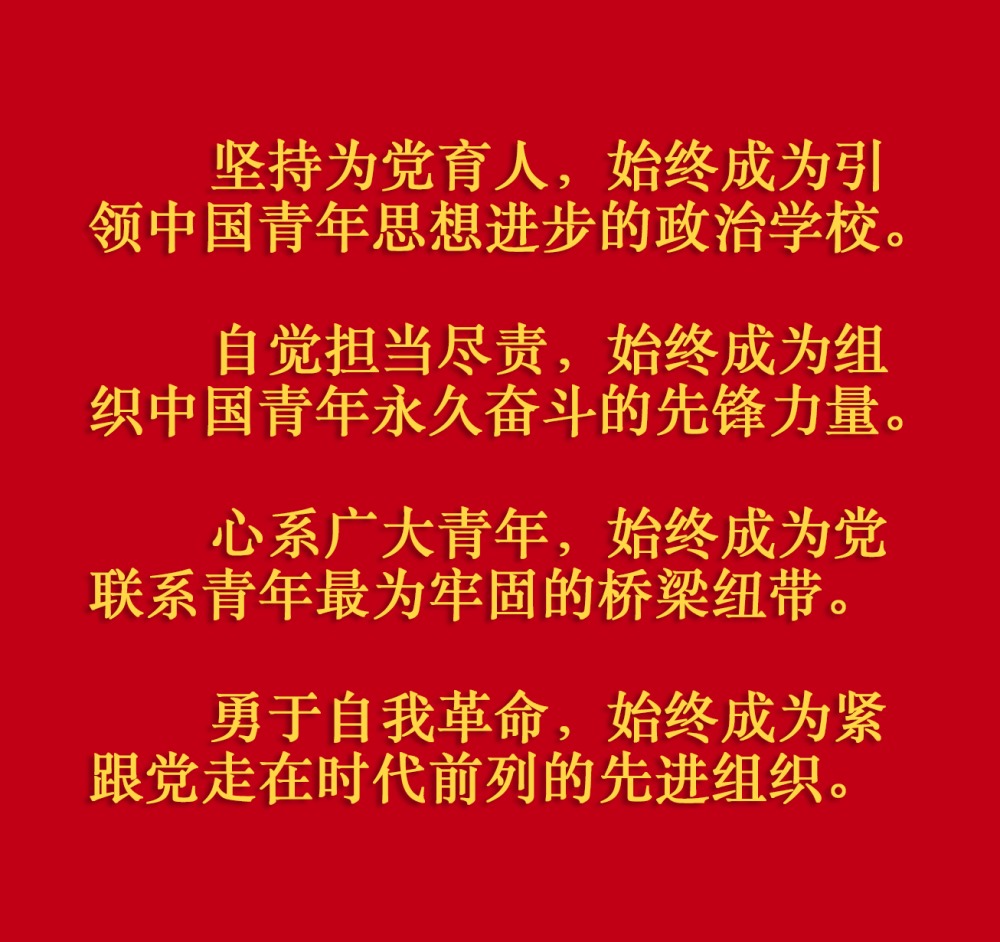 在慶祝中國共產(chǎn)主義青年團成立100周年大會上,習近平總書記從黨和國家事業(yè)發(fā)展全局出發(fā),給共青團明確提出了4點希望,飽含深情、催人奮進。