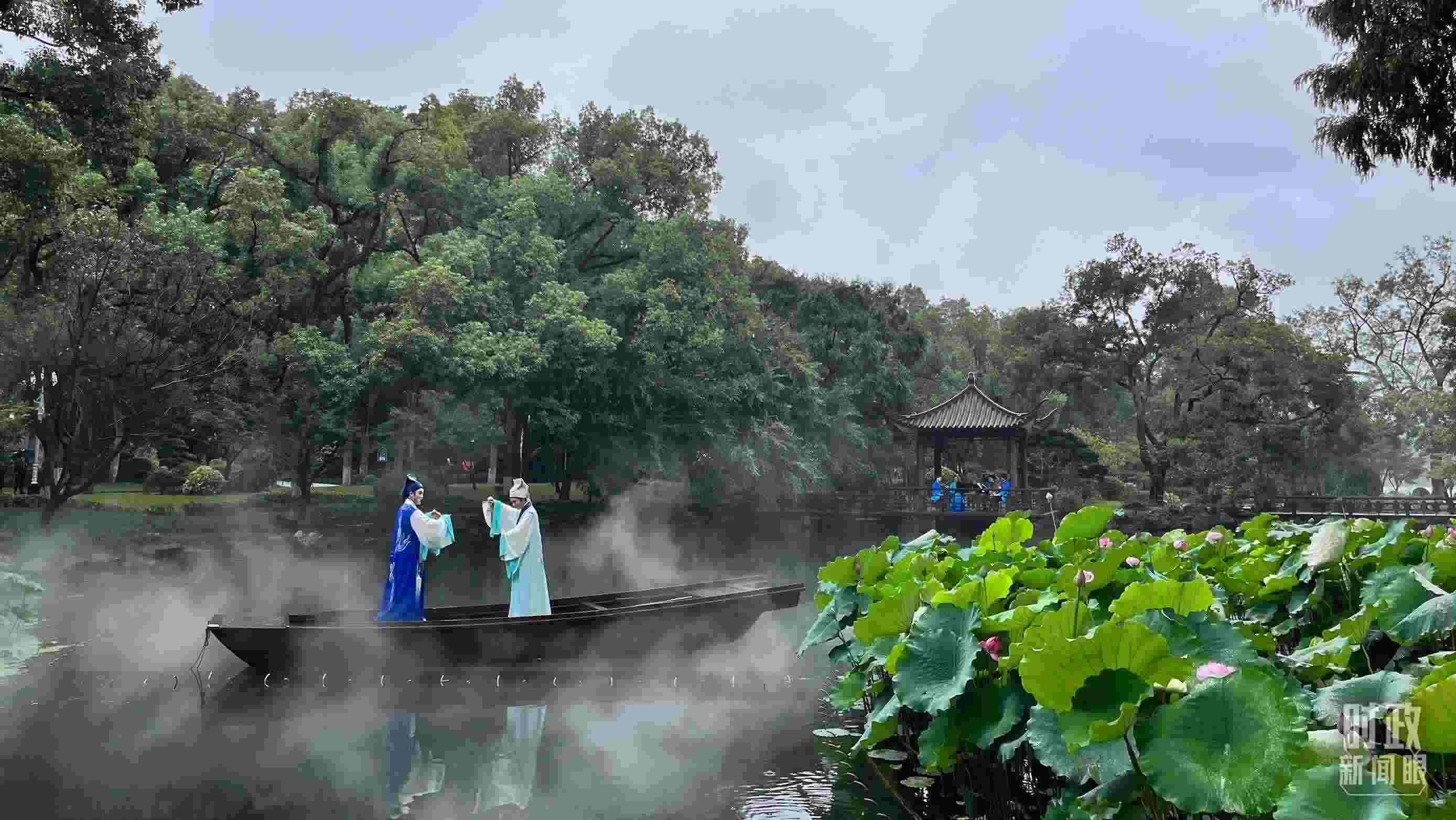 沿著湖畔長廊,漫步至漪園宴會(huì)廳,沿途可以欣賞浙江小百花越劇院青年演員表演的越劇經(jīng)典劇目《梁祝》選段《十八相送》。